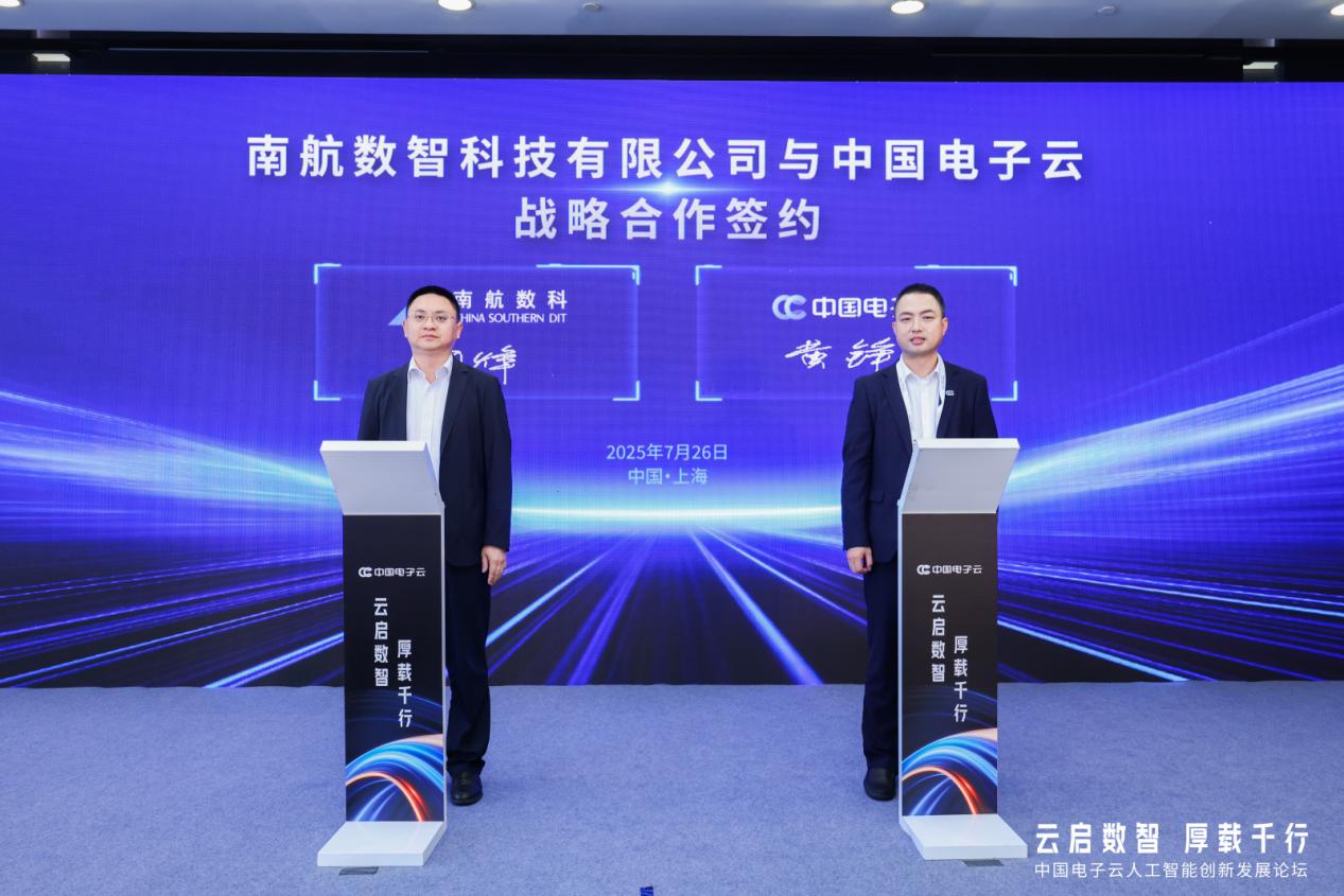 在论坛的签约仪式环节,南航数科与中国电子云正式签署战略合作协议,双方将围绕民航领域自主安全应用研发、数字化创新、数据资产应用等展开深度合作,共同推动中国民航产业的高质量发展与国产化升级。双方计划在安全运行、智能管控、航网优化等多个领域推出系列创新应用,共同书写智慧民航建设的新篇章。这一合作标志着我国民航业数字化转型迈入新阶段,将为智慧民航建设注入强劲动能。