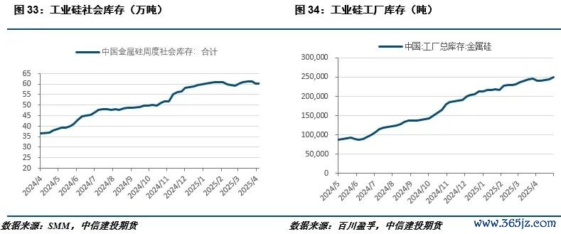 本周工业硅库存小幅增加。本周工业硅社会库存60.3万吨,较上周增加0.1万吨,其中广期所仓单库存34.6万吨,较上周减少0.2万吨。本周工业硅工厂库存25.0万吨,较上周增加0.6万吨。