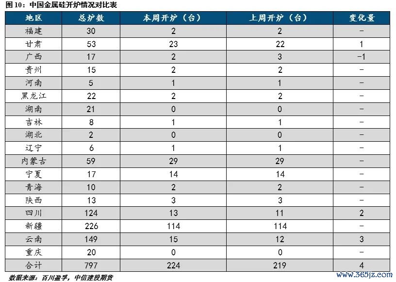 工业硅开炉数小幅上升,主因西南部分硅厂按计划开工,西北开工暂维持稳定。据百川盈孚数据,截止4月29日,我国金属硅开工炉数224台,整体开炉率28.11%,较上周增加5台。