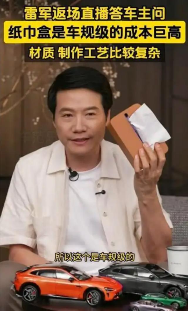 也就是说,"车规级"一般说的是电子元件,严格来说,纸巾盒是不在这个范围内的。当然,这倒不是说雷总就是在"玩噱头"。